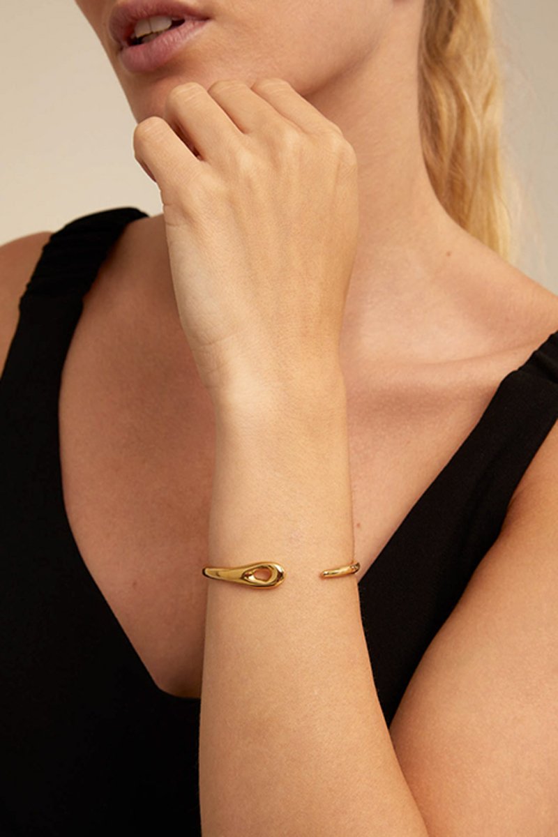 Jonc ouvert en plaqué or jaune serti de topazes.