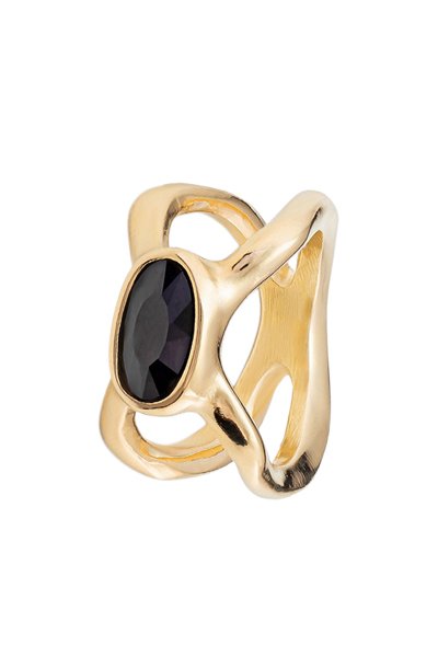 Bague en plaqué or jaune sertie de cristaux.