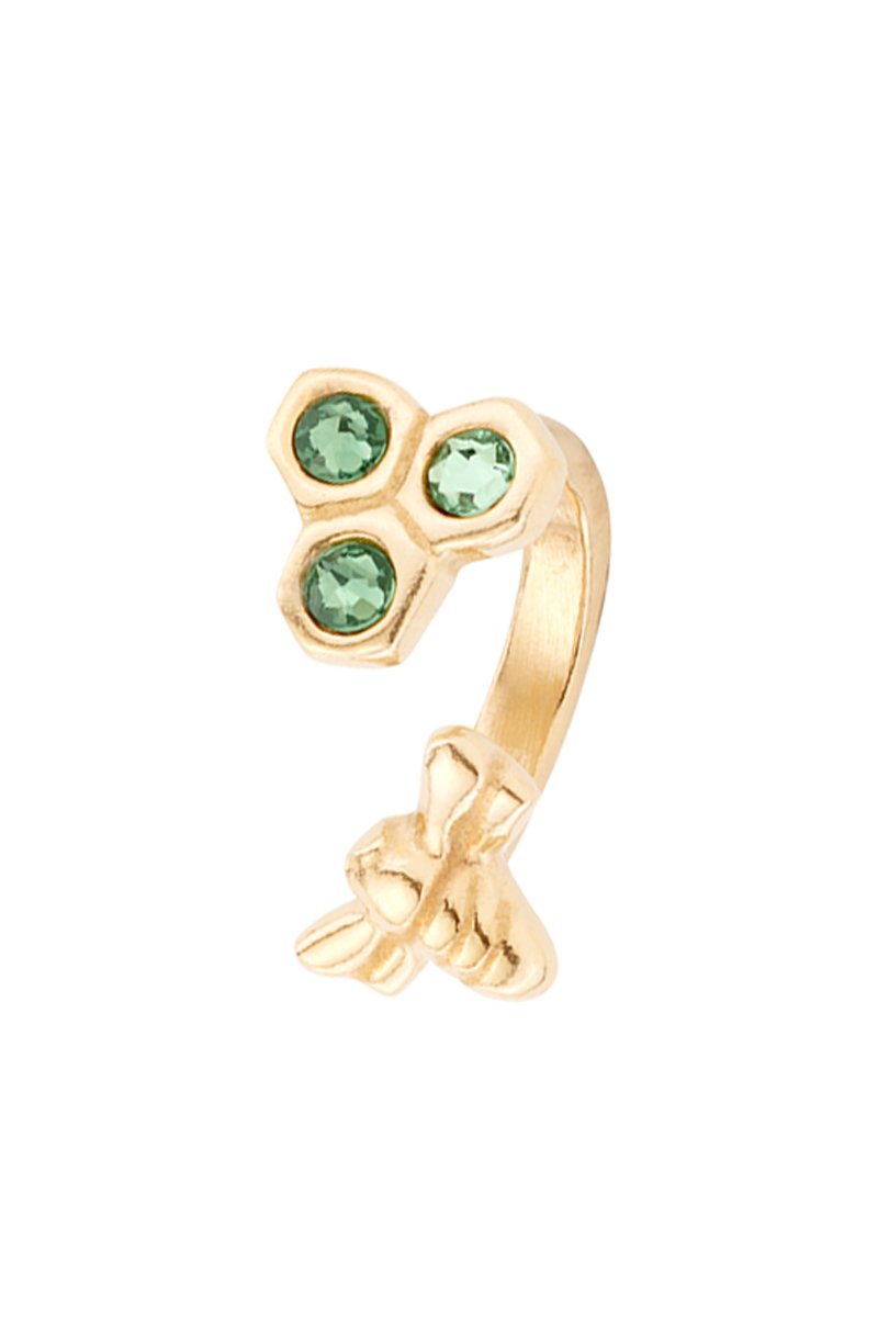 Bague réglable en plaqué or jaune sertie de cristaux.