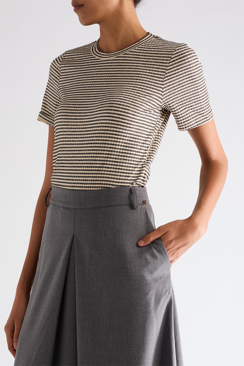 Matière : 53% polyester, 28% viscose, 8% polyamide, 7% fibres métallisées et 4% élasthanne