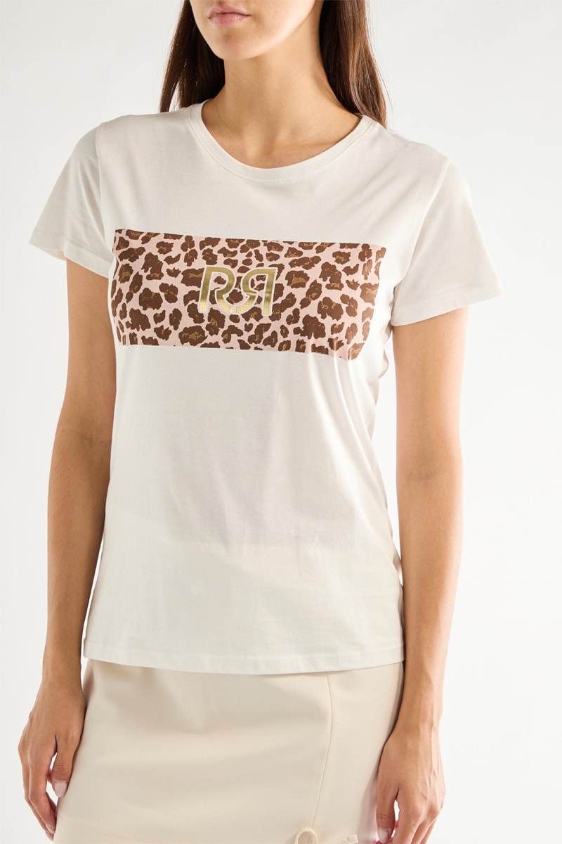 Motifs léopard et logo devant.
