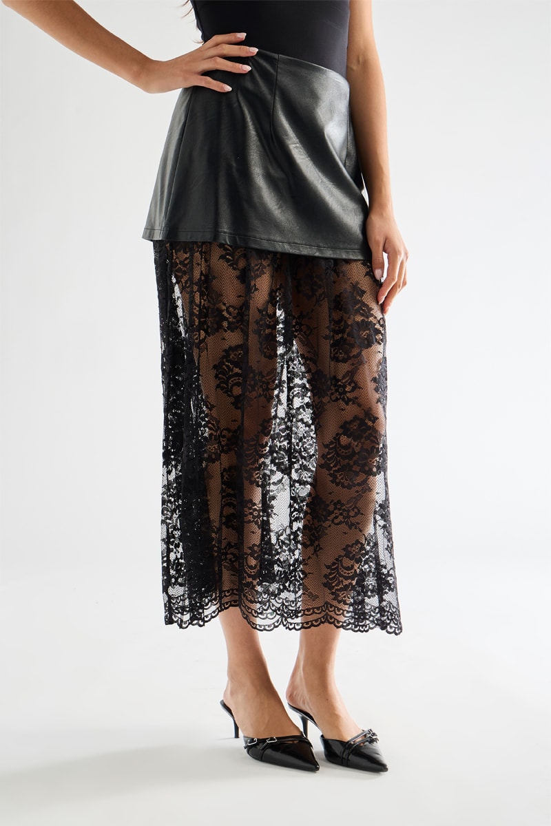 Jupe longue bi-matière - Noir