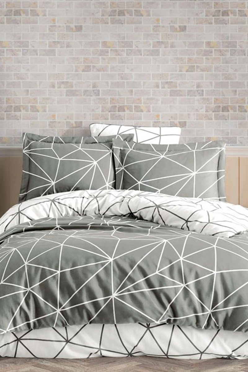 Parure de couette en coton 55 fils/cm² Metaverse - Gris et blanc