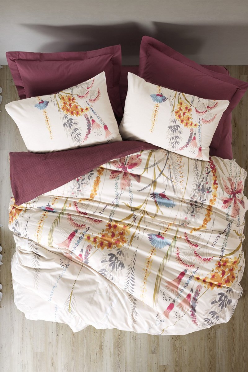 Parure de couette en coton 57 fils/cm² Flos - Ecru et rose