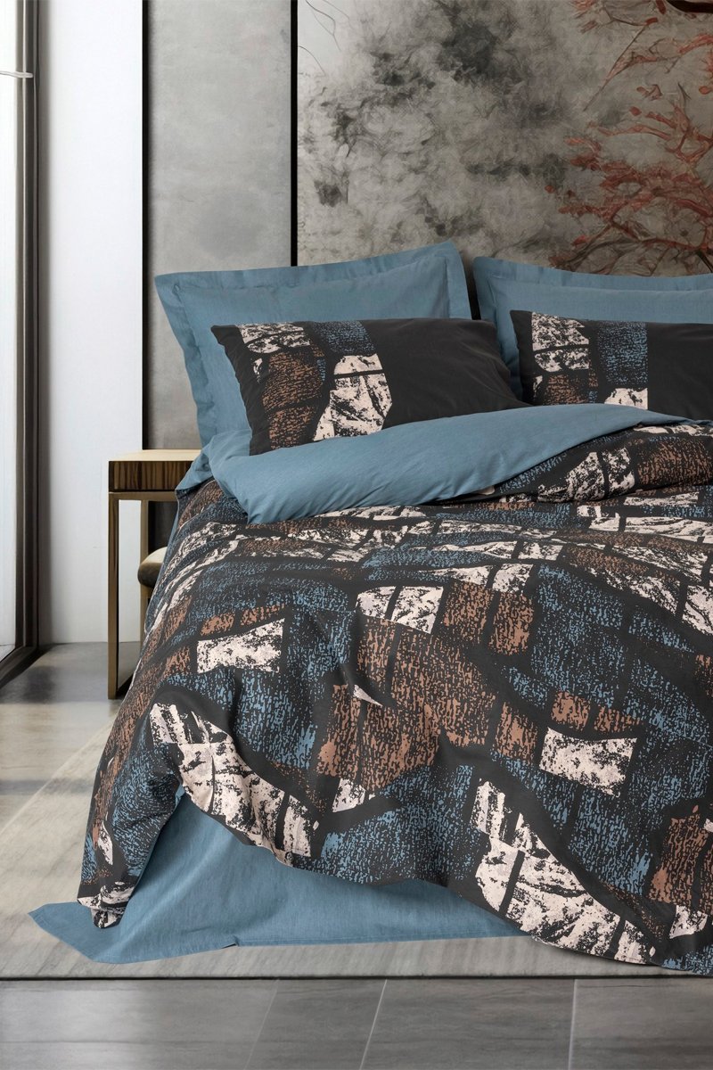 Parure de couette en coton 57 fils/cm² Senso - Bleu et marron