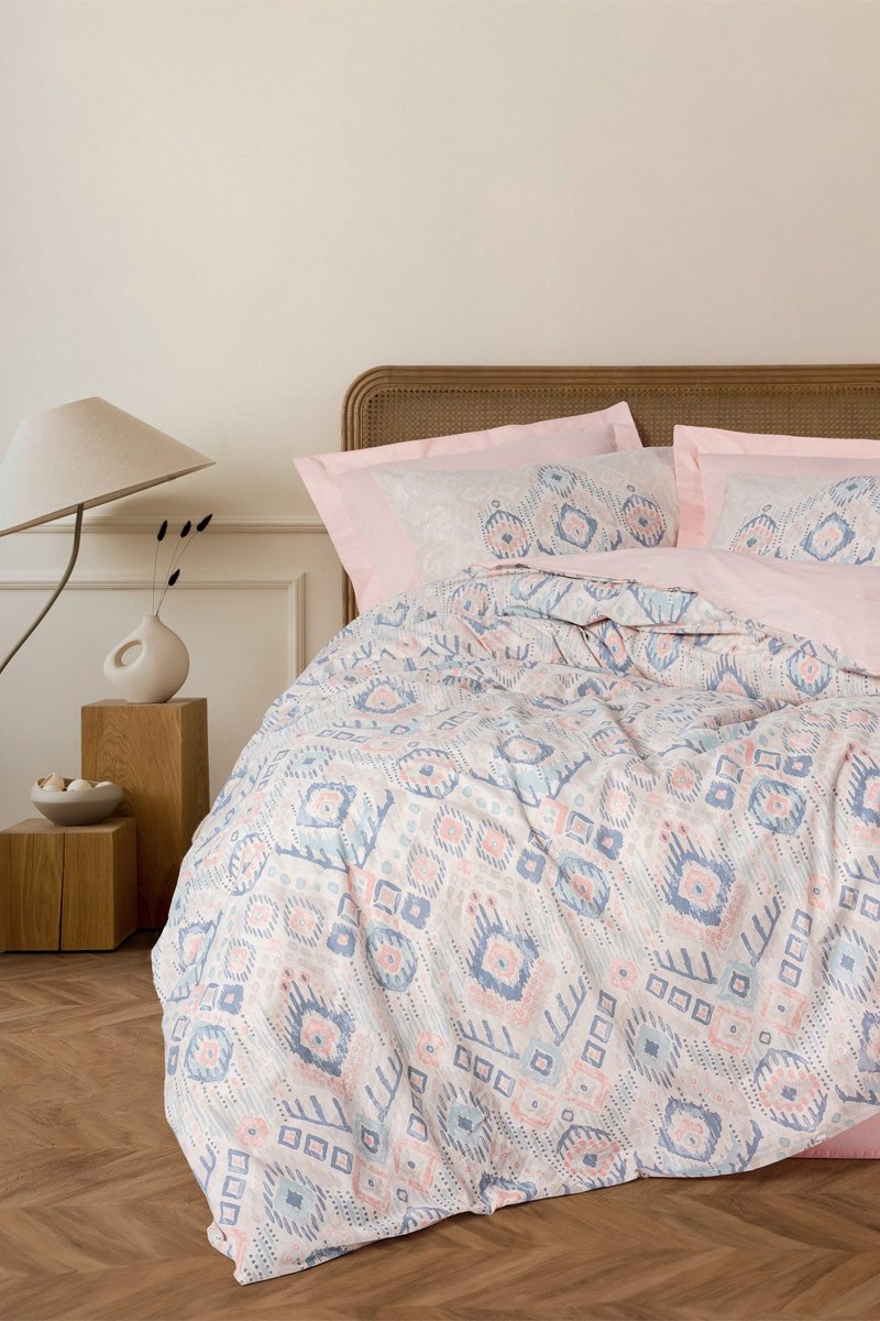 Parure de couette en coton 57 fils/cm² Mosola - Saumon et bleu