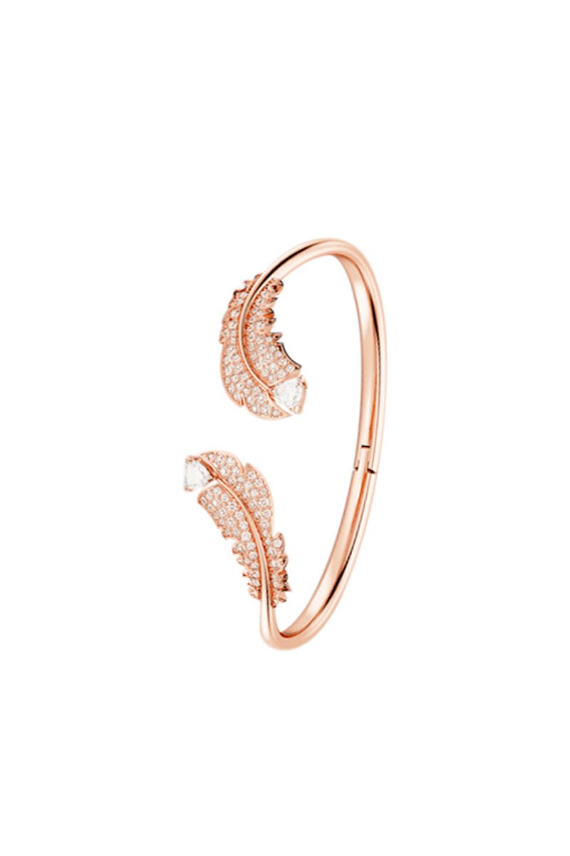 Jonc ouvert en plaqué or rose orné de cristaux Swarovski.
