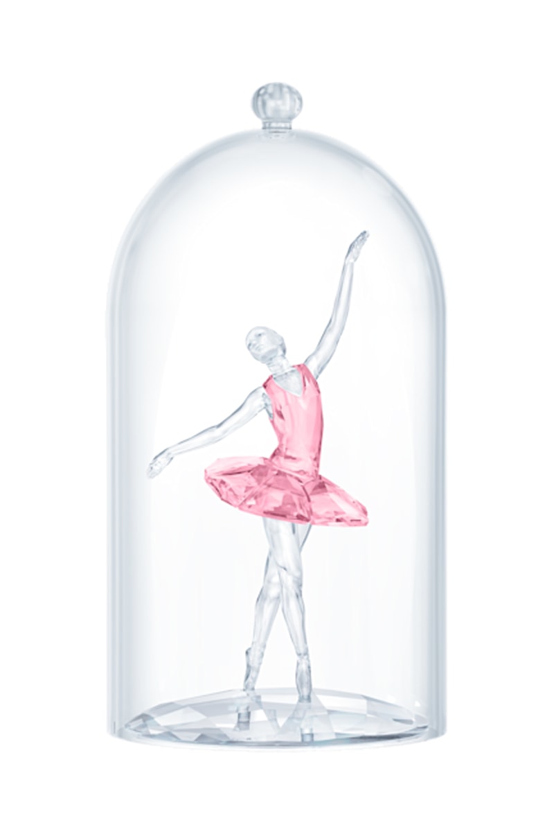 Figurine ballerine ornée de cristaux Swarovski® sous cloche de verre amovible.