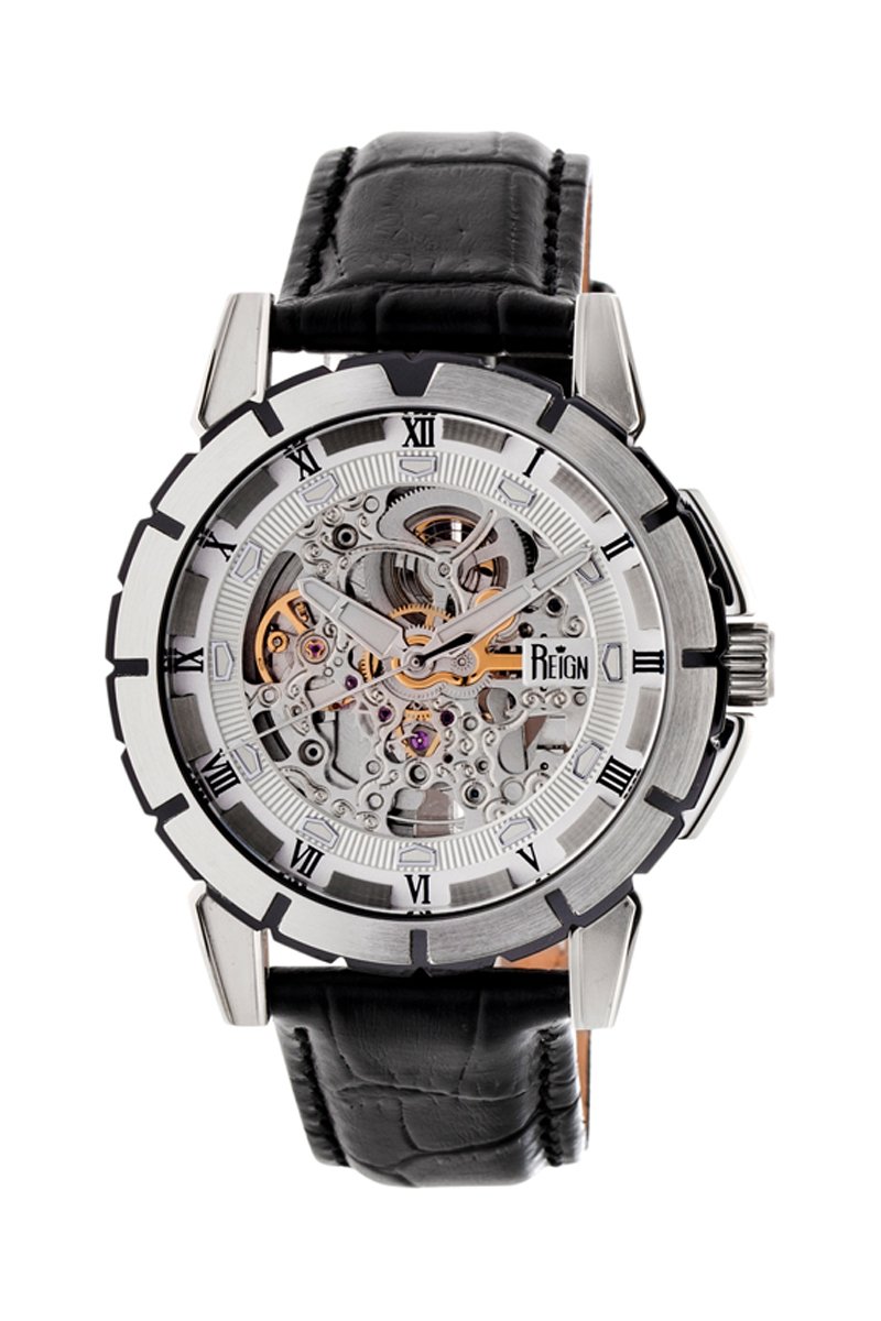 Montre automatique en cuir Philippe - Noir et argenté - Reign