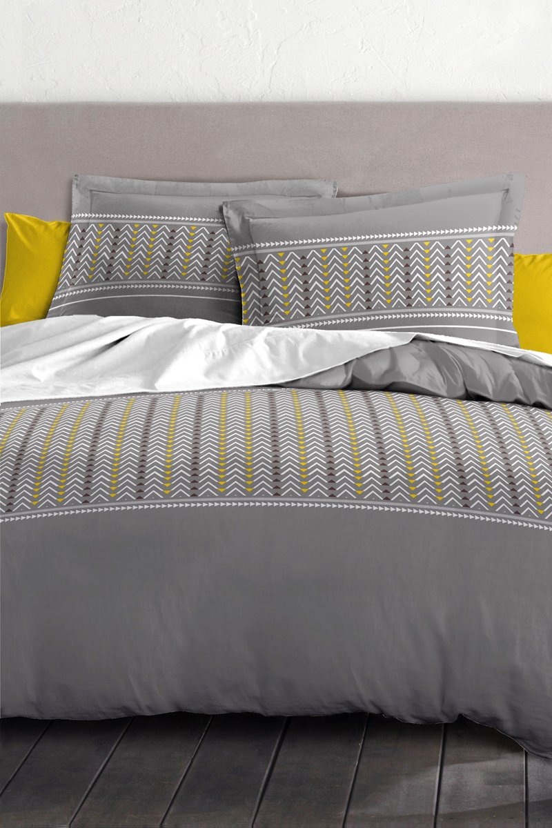 Parure de couette en coton 57 fils/cm² Nat - Gris et jaune