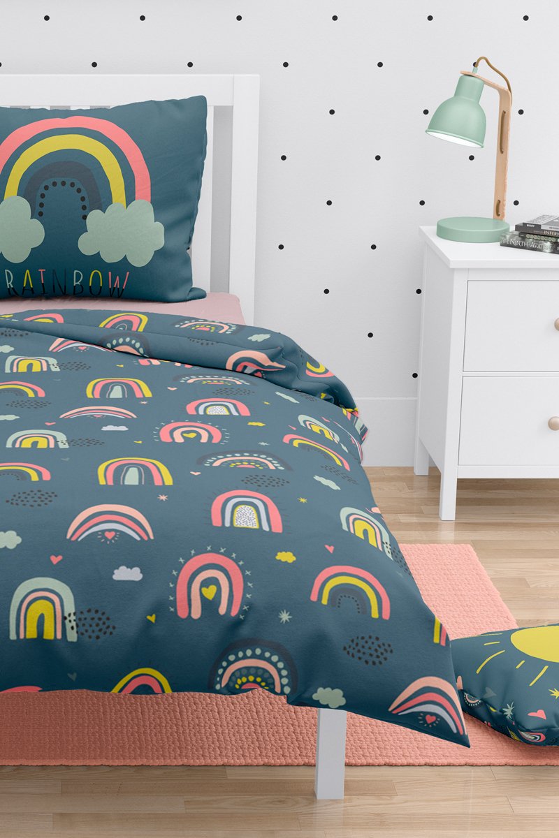 Parure de couette en coton 57 fils/cm² Rainbow night - Vert et rose