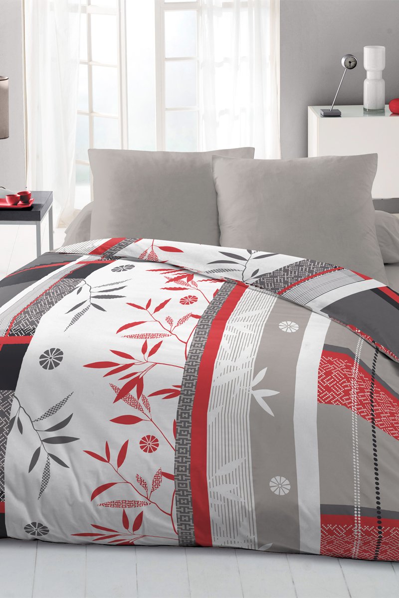Parure de couette en microfibres Shizuoka - Blanc et gris