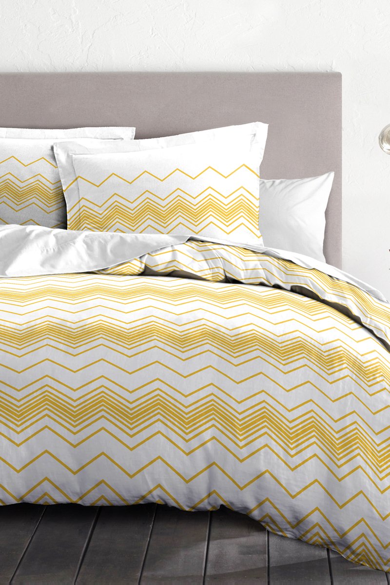 Parure de couette en coton 57 fils/cm² West Wide - Blanc et jaune