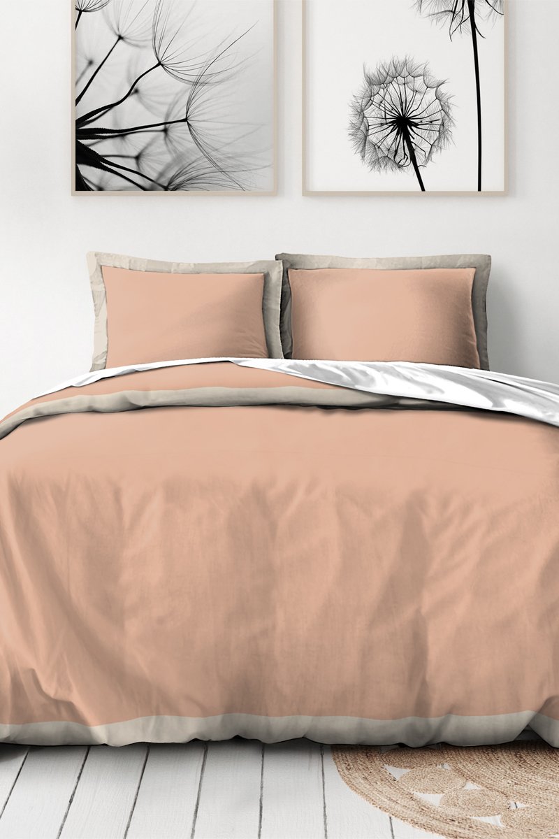 Parure de couette en percale de coton comprenant :