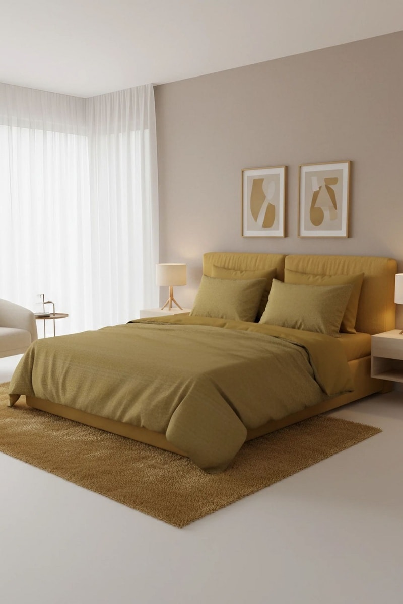 Parure de couette en coton Najva - 57 fils/cm² - Moutarde