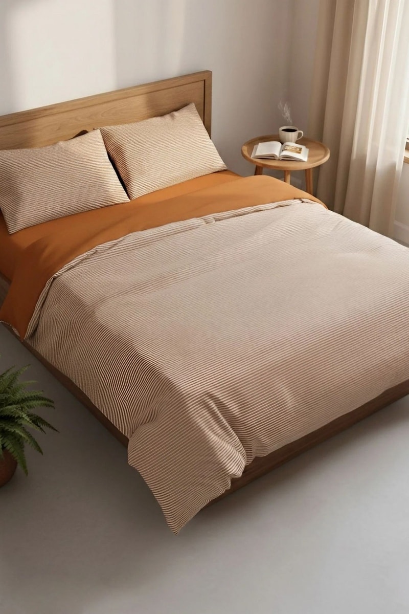 Parure de couette en coton Stark - 57 fils/cm² - Cannelle