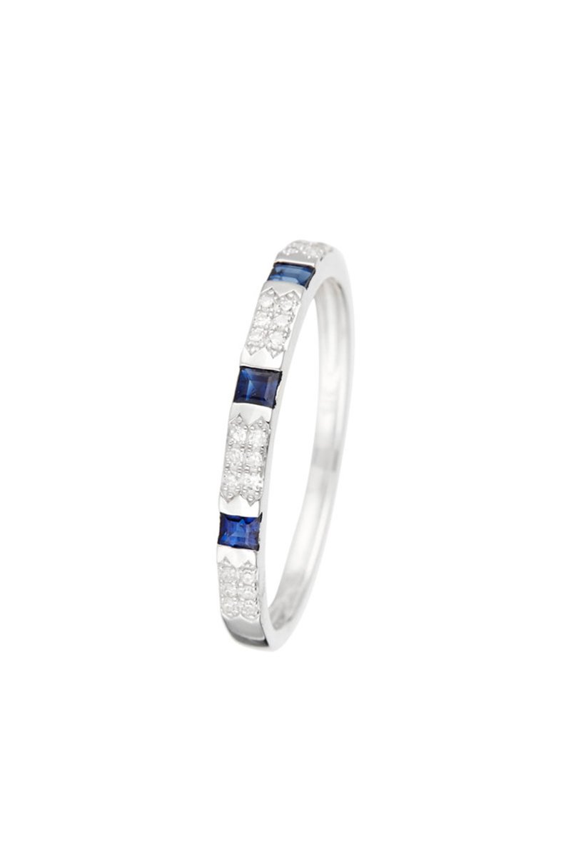 Matière : or blanc 375/1000, saphirs 0,17 carat/3 et diamants 0,072 carat/24
