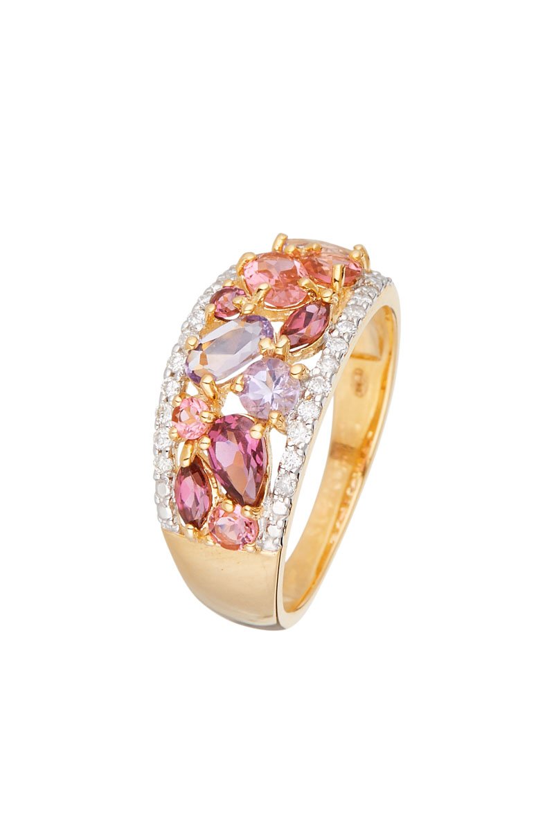 Bague Rhodomix - Or jaune, diamants, améthystes, rhodolites et tourmalines