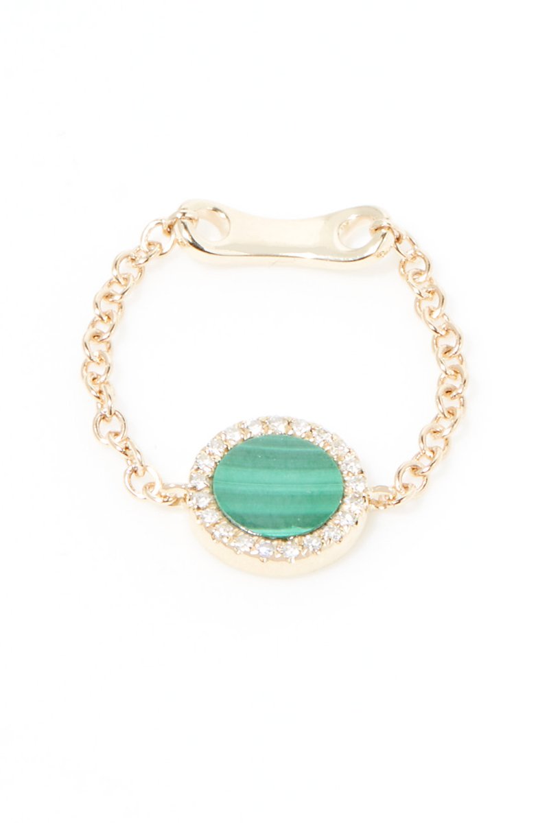 Bague chaine Nicée - Or jaune, diamants et malachite