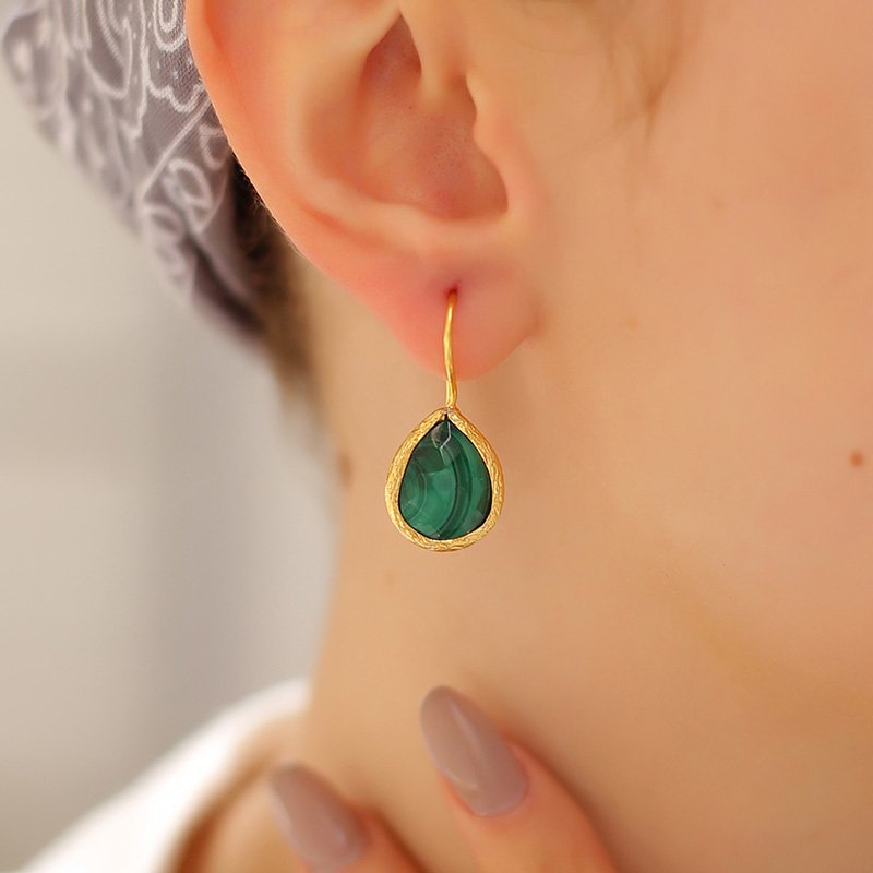 Craquez pour ces boucles d'oreilles en laiton plaqué or, sublimées par des malachites aux couleurs éclatantes. Élégantes et légères, elles apporteront une touche de glamour et de sophistication à toutes vos tenues !