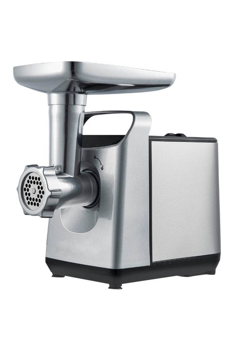 Fourni avec 3 Grilles de hachoir (fin, moyen et gros), embout à saucisses, plateau en aluminium, 1 adaptateur pour boulettes kebbé, poussoir.