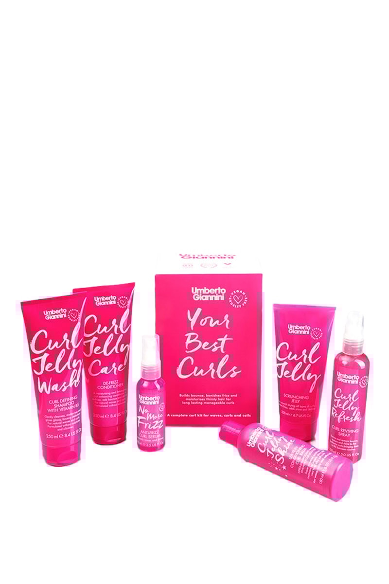Kit complet pour cheveux bouclés comprenant 6 produits pour laver, démêler, définir, nourrir, faire briller et rafraîchir les boucles.