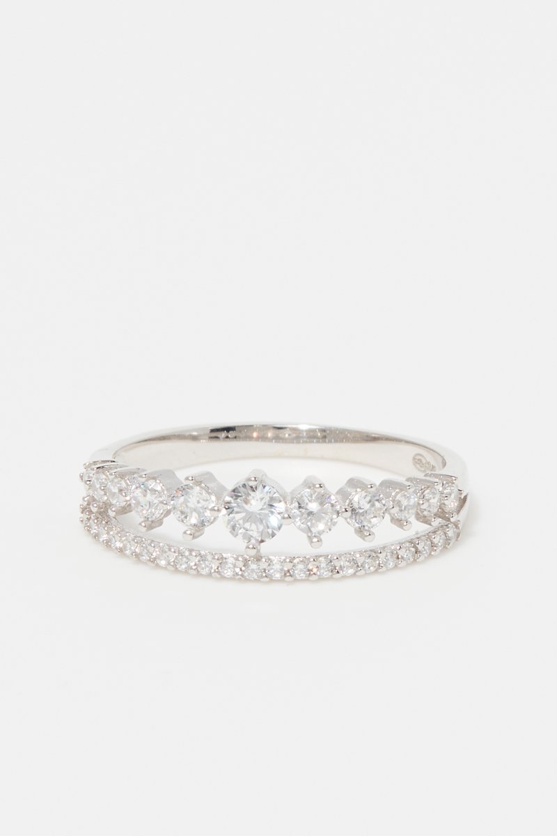 Bague en or blanc sertie de zirconiums.