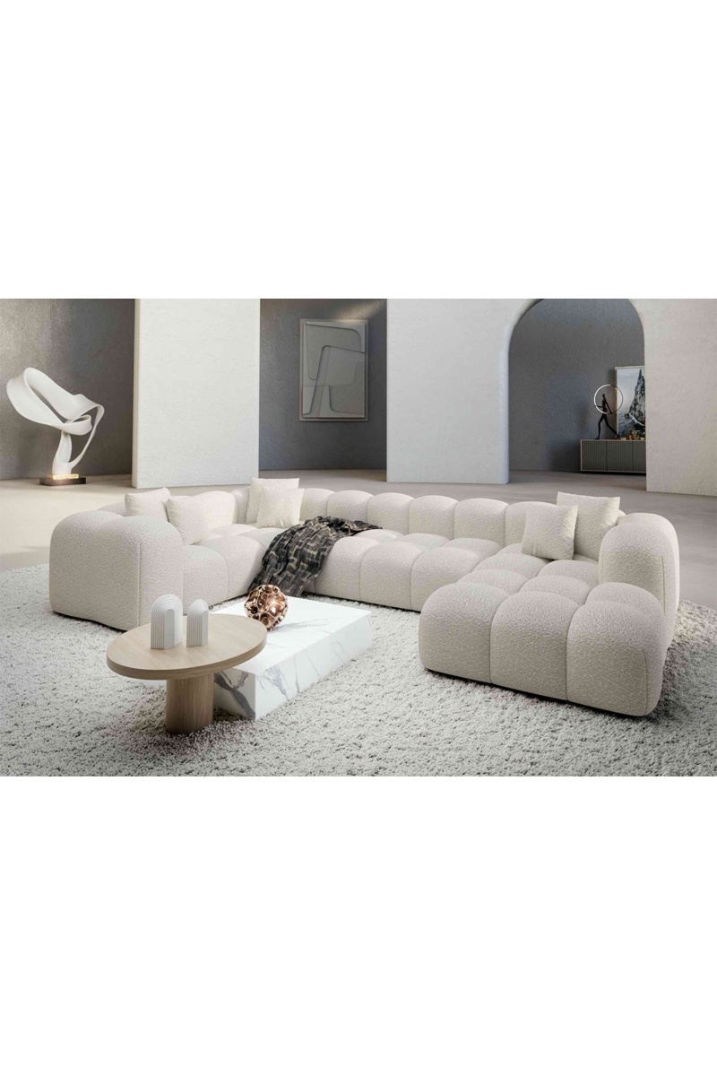 Canapé d'angle gauche panoramique Nuvola - Blanc - 7 places - Tissu bouclé