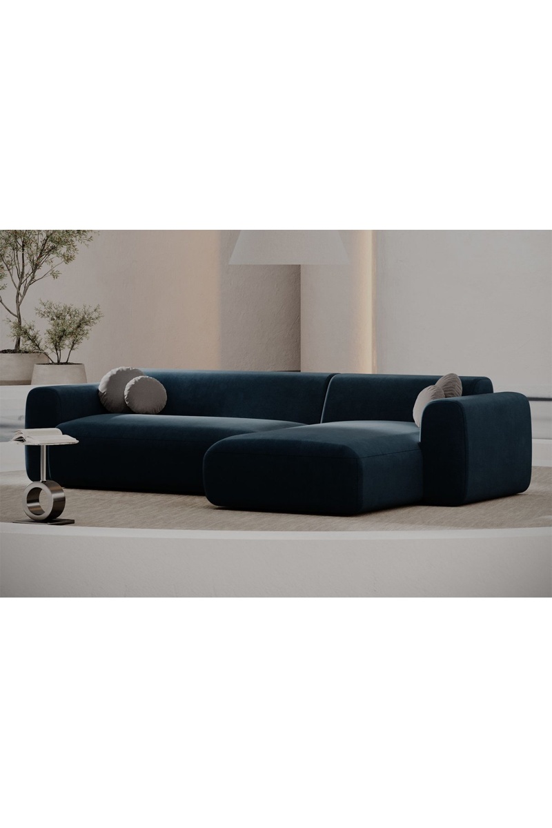 Canapé d'angle droit Moloko - Bleu foncé - 5 places - Tissu toucher velours