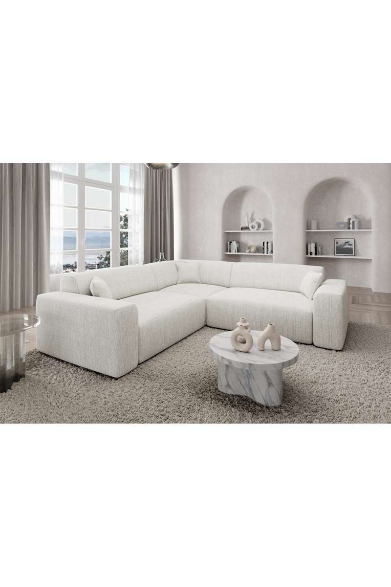 Canapé d'angle Lenova - Blanc - 6 places - Tissu structuré