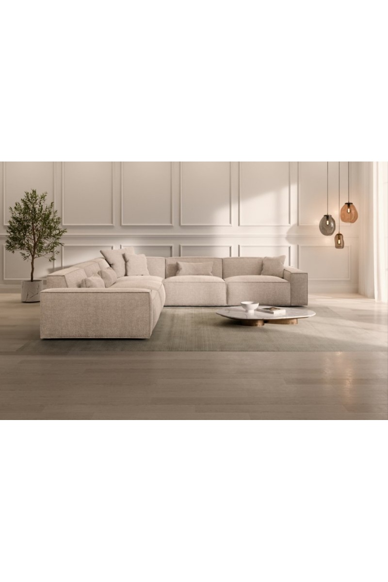 Canapé d’angle Lionel - Beige - 6 places - En tissu structurel