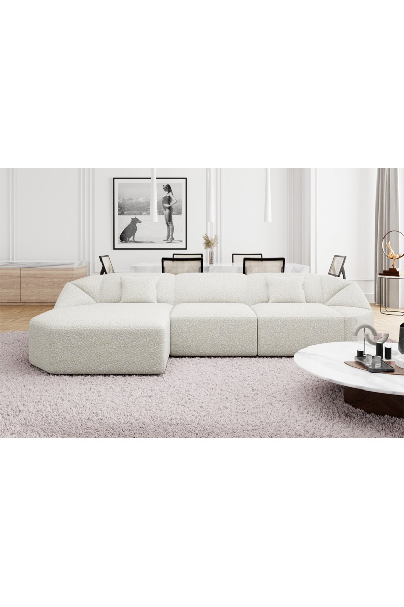 Canapé d'angle gauche Laguna - Blanc - 5 places - Tissu bouclette
