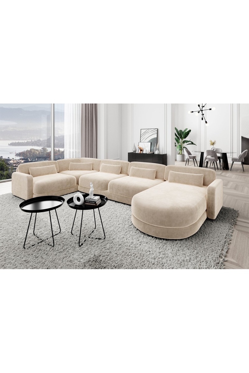 Canapé d'angle gauche panoramique Migala - Crème - 7 places - En velours