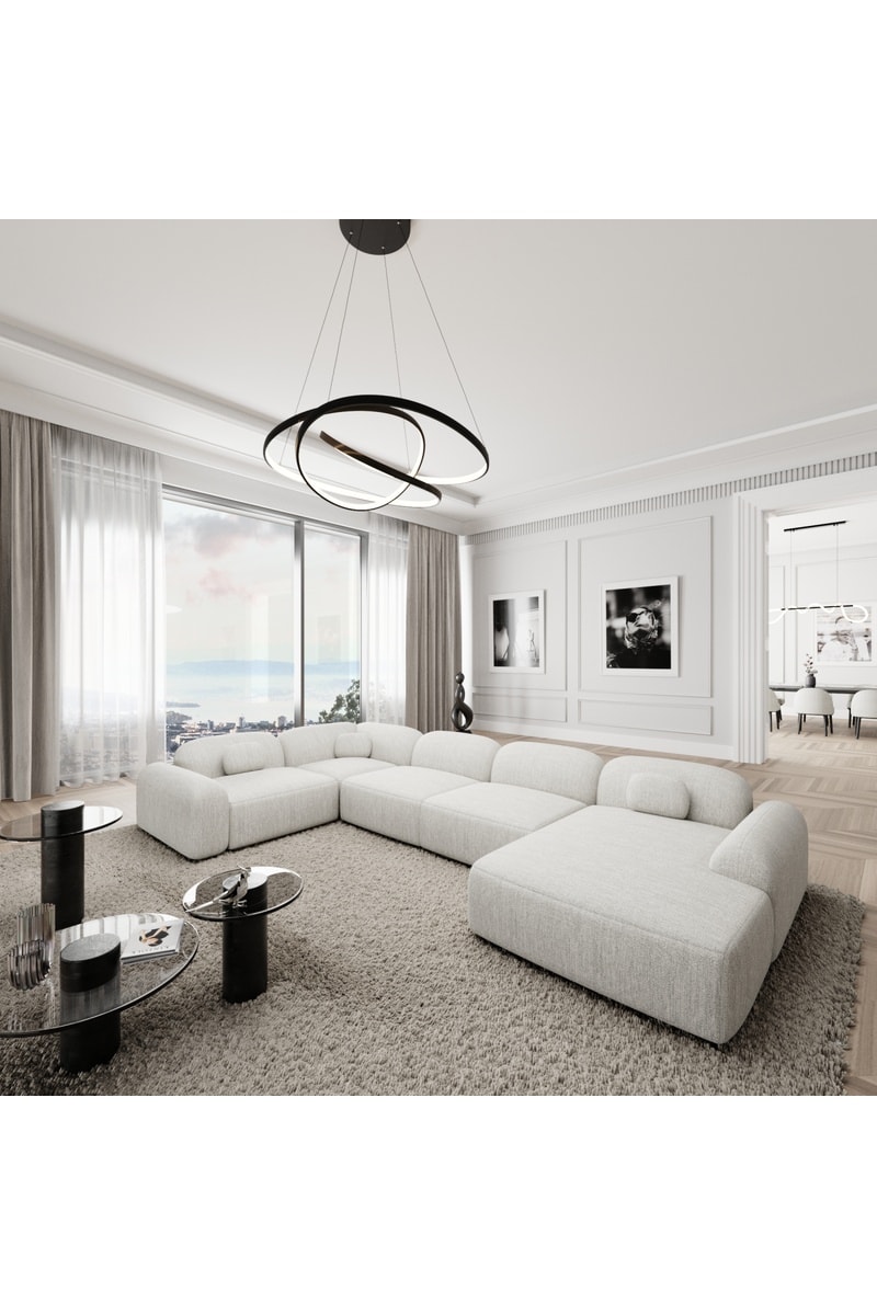 Canapé d'angle droit Labucca - Blanc - 7 places - En polyester