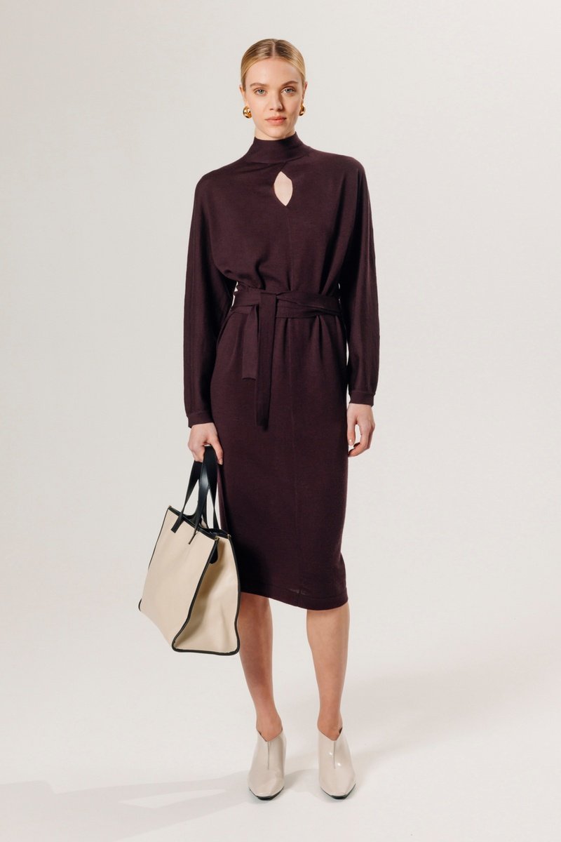 Robe longue en laine mérinos - Violet foncé