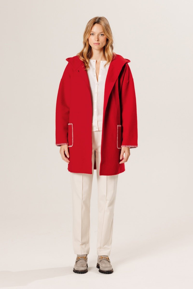 Manteau en laine à capuche - Rouge