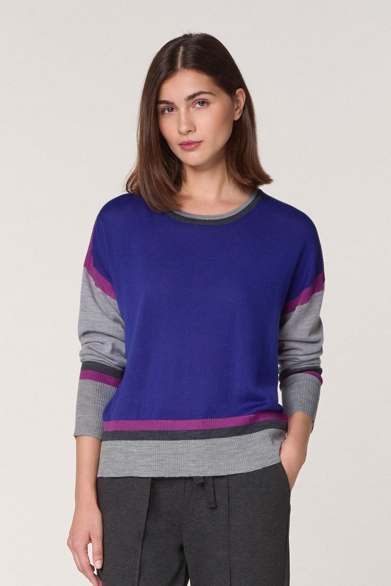 Coloris : bleu foncé, gris clair chiné , fuchsia et gris foncé chiné
