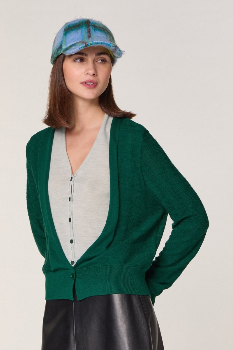 Gilet trompe-l’œil en mérinos - Vert foncé