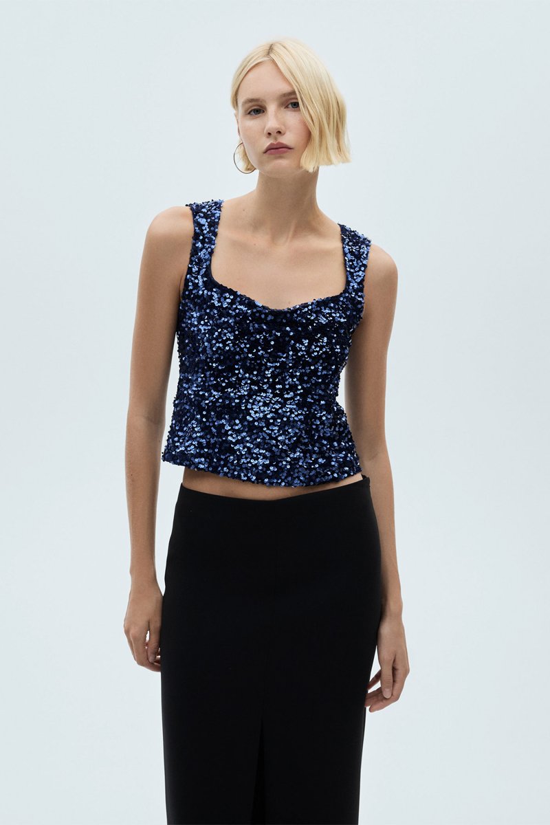 Top bretelles à sequins - Bleu marine