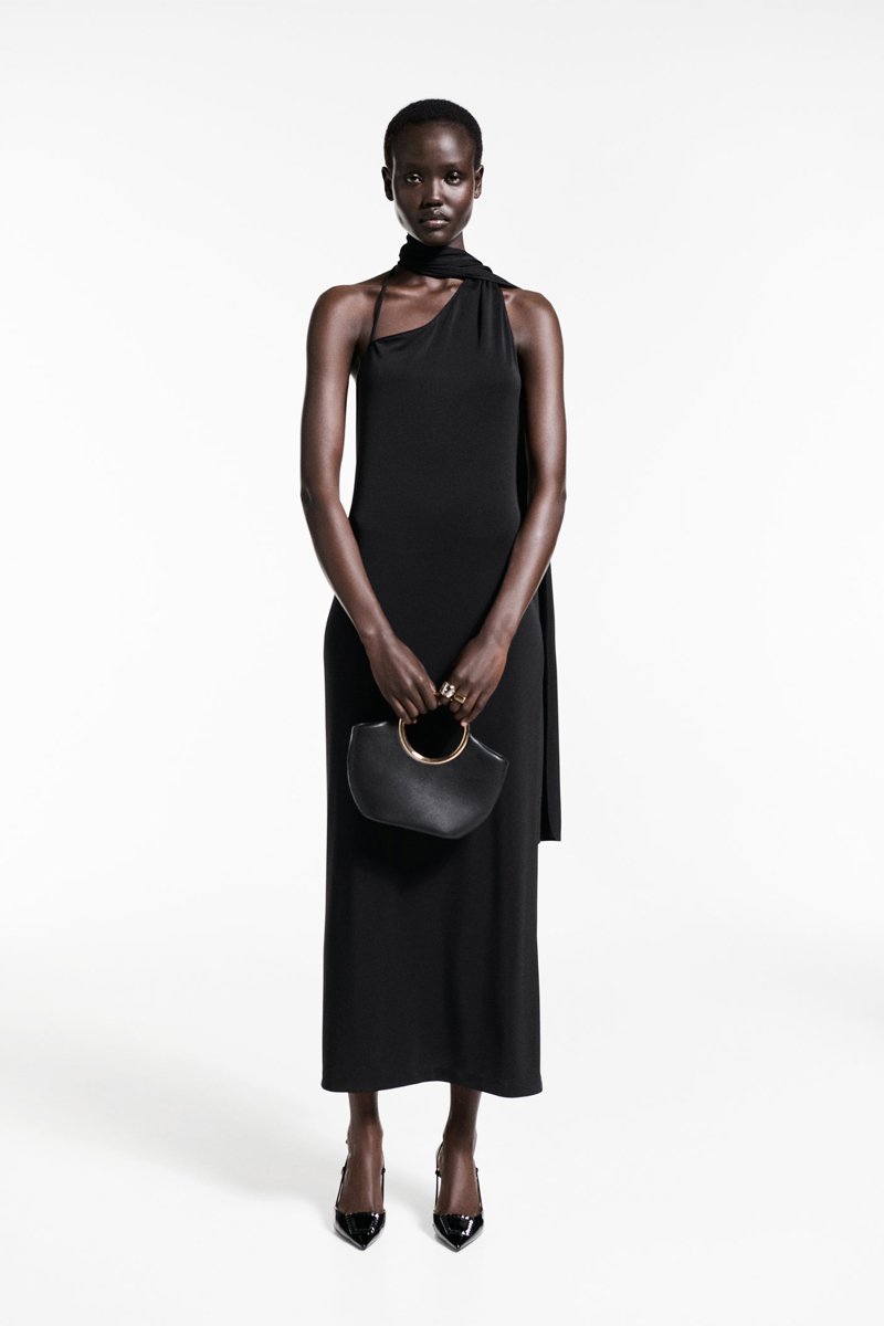 Robe asymétrique col noeud - Noir