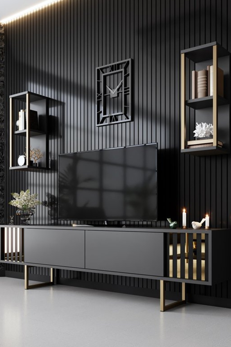 Dimensions meuble TV : L180 x H30 x P48 cm
