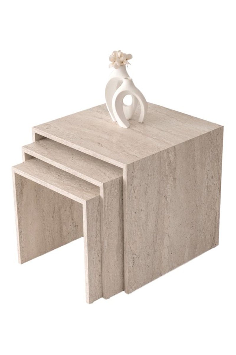 3 tables gigognes en panneaux de particules mélaminés.