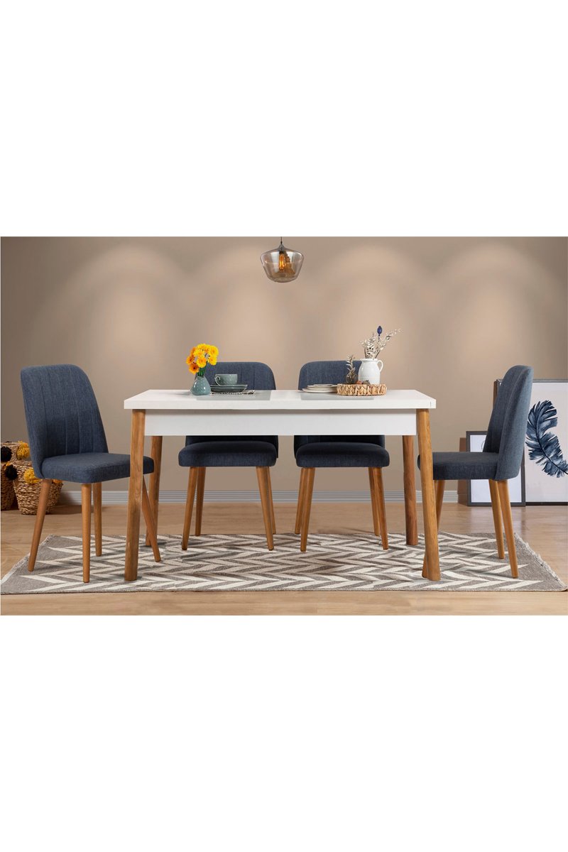 Table à manger - Blanc et naturel - Pieds en bois - 120 x 77 x 75 cm