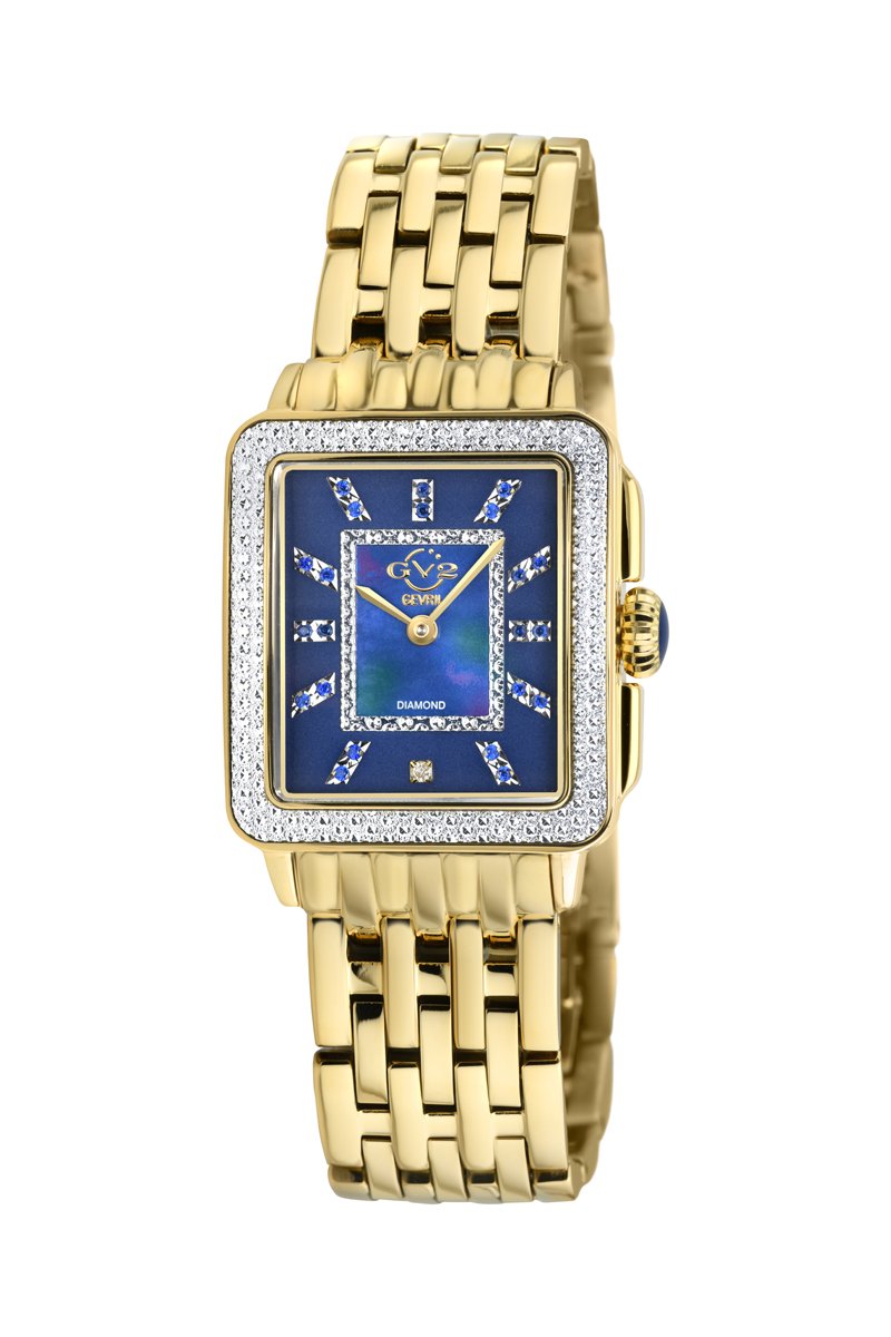 Montre à quartz en acier doré à l'or fin jaune, nacre, spinelles et diamant Padova