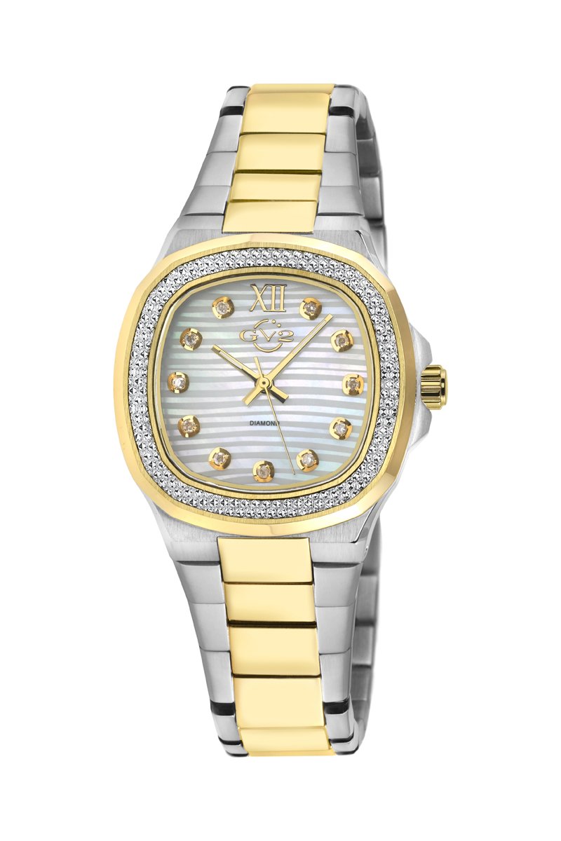 Montre à quartz en acier, doré à l'or fin jaune et diamants Potente