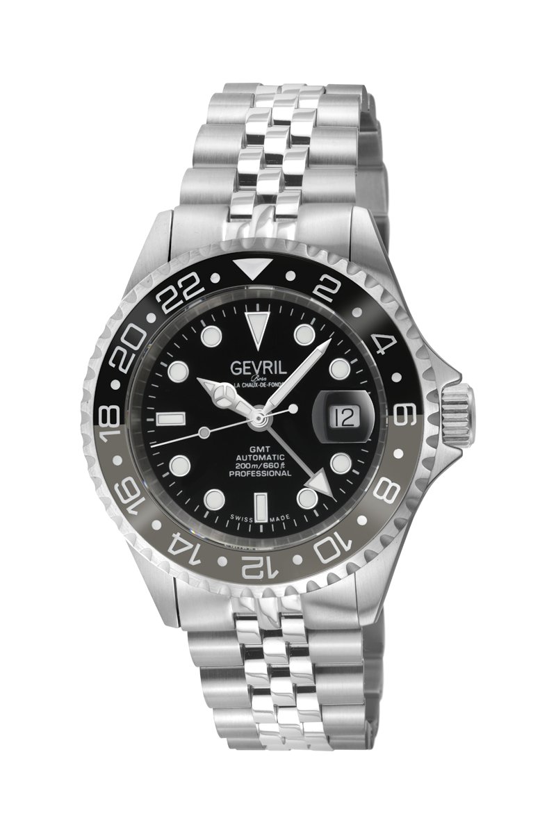 Montre automatique en acier Wall Street - GMT - Argenté et noir