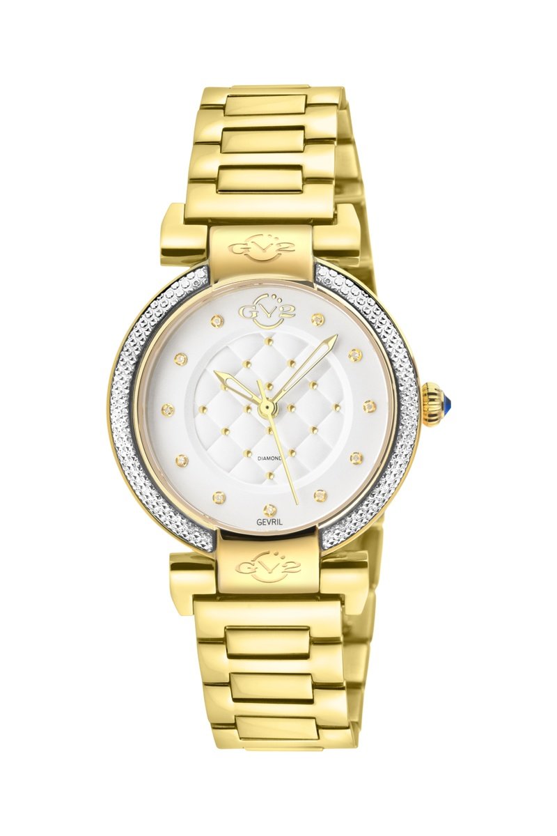 Cadran et lunette sertis de diamants. Bracelet à maillons.