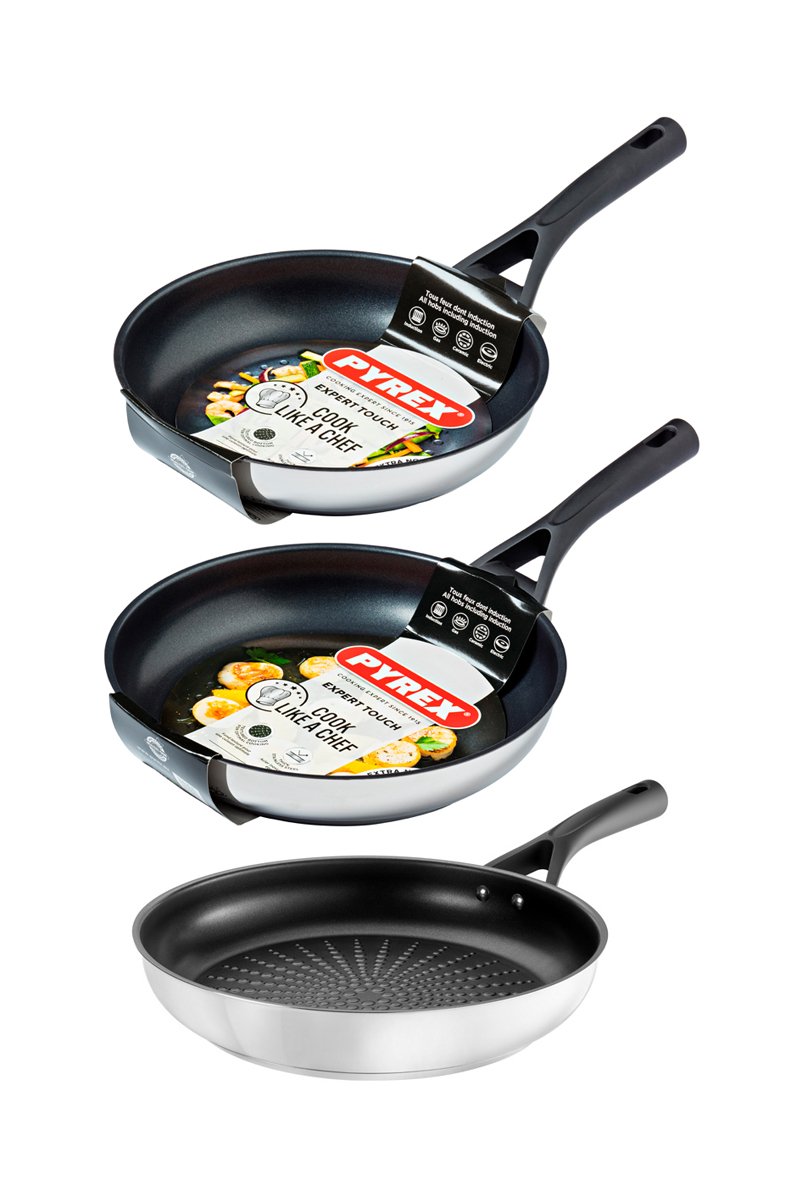 3 x Poêle en acier inoxydable Expert Touch - 20/24/28 cm