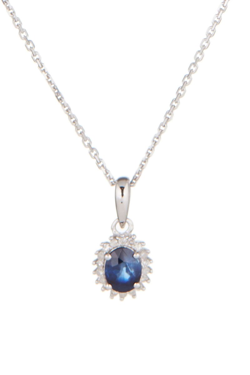 Pendentif en or blanc serti de 18 diamants et d'un saphir.