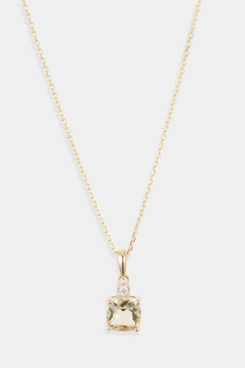Pendentif en or jaune serti de d'un diamant et d'un quartz jaune.